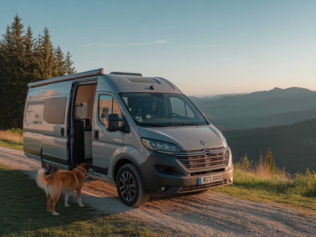 Le voyage en van avec un chien implique souvent l’utilisation d’aires de camping-car, de parkings autorisés à la nuitée ou de zones de bivouac plus sauvages.